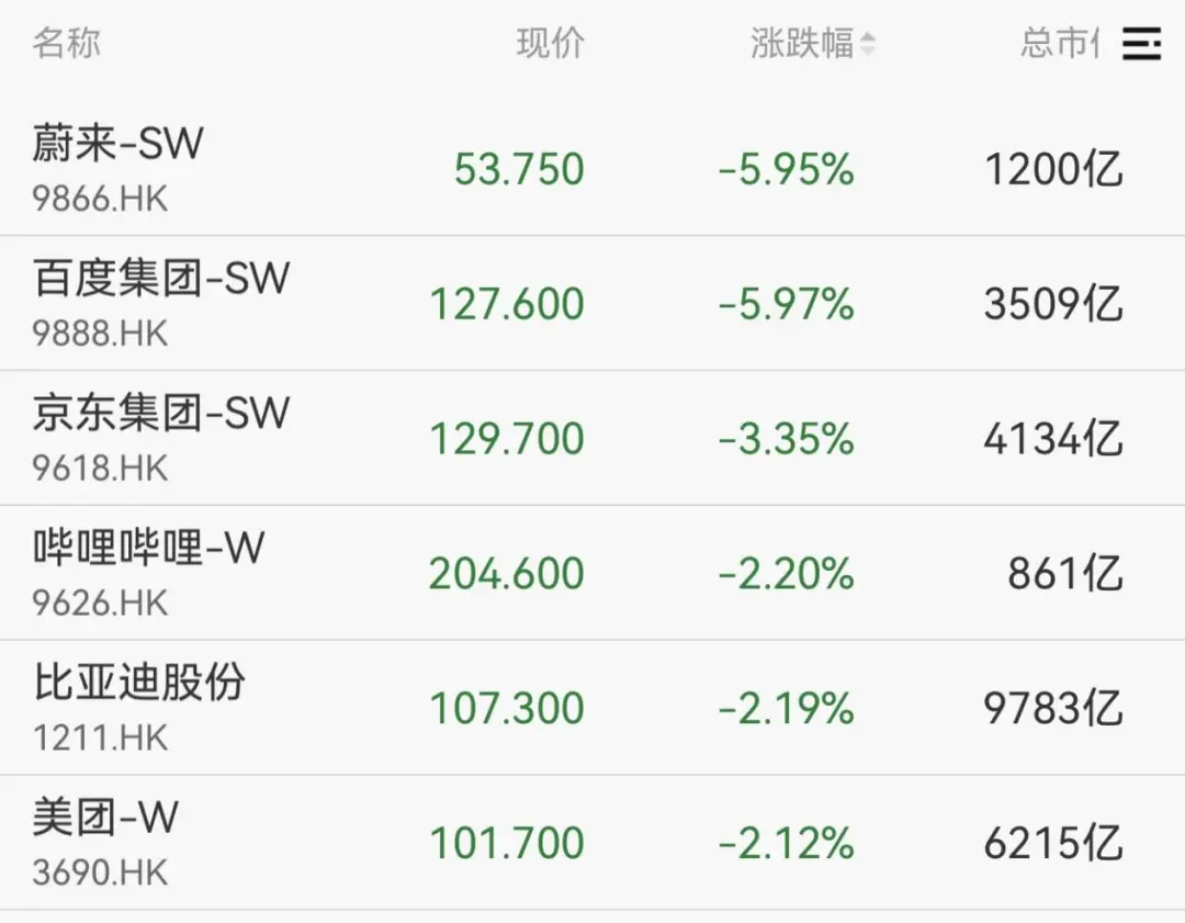 港股方面,三大指数震荡调整,蔚来、百度集体均跌超5%,京东集团跌超3%。